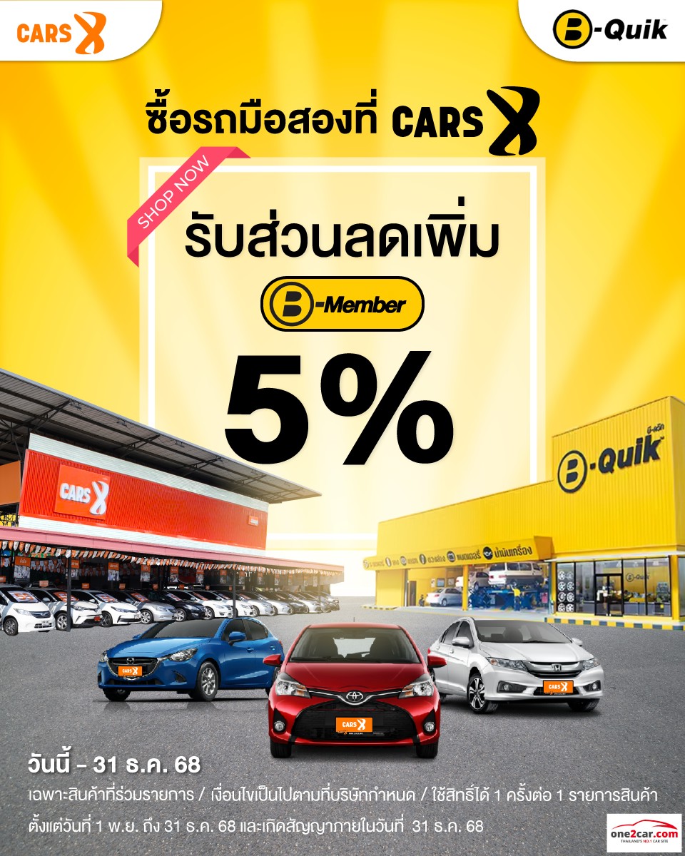 ซื้อรถมือสองที่ CARS X ผ่าน one2car รับส่วนลด B-Member เพิ่ม 5% จาก B-Quik คุ้มสุดส่งท้ายปี