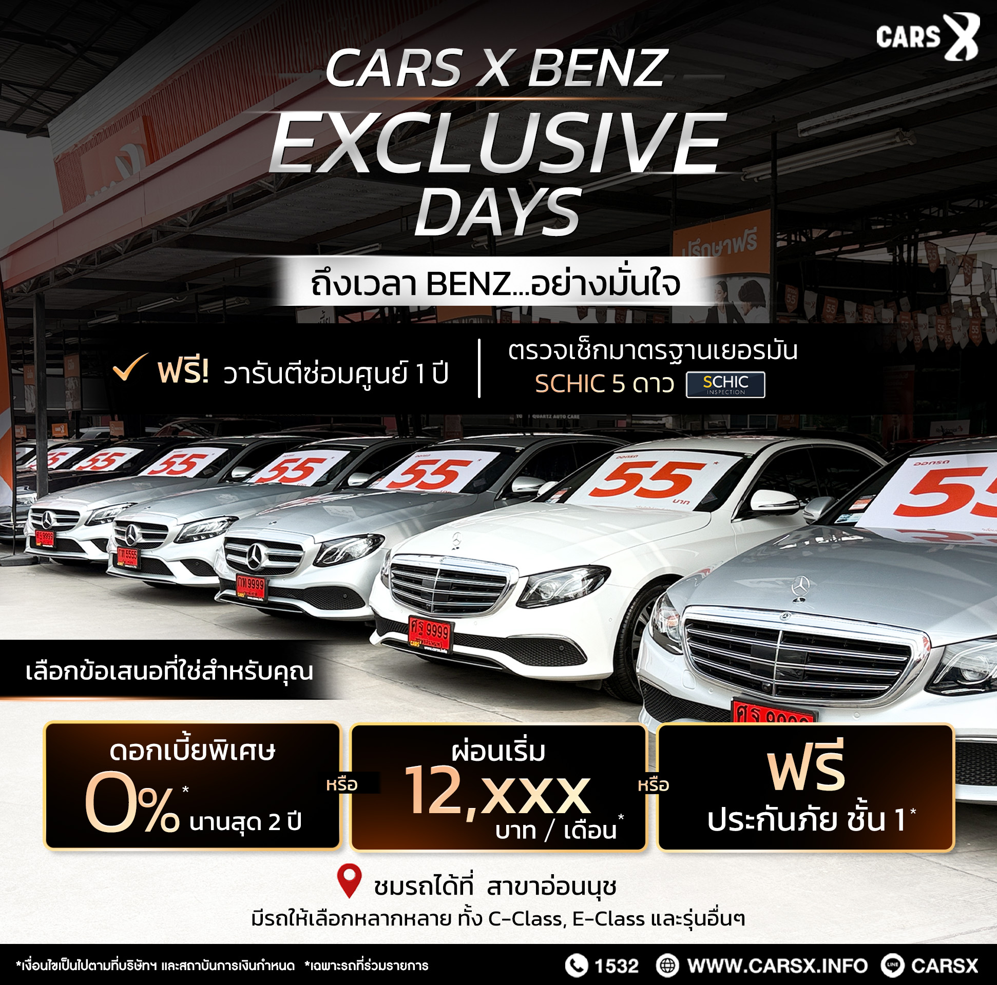 โอกาสทองของคนรักดาวสามแฉกมาถึงแล้ว กับแคมเปญสุดพิเศษ C-Class & E-Class Collection ที่ยกทัพรถสวยสภาพนางฟ้ามาให้คุณเลือกแบบจุใจ พร้อมข้อเสนอที่กล้าการันตีว่าคุ้มที่สุดในนาทีนี้ ลือกข้อเสนอที่ใช่สำหรับคุณ: ดอกเบี้ยพิเศษ 0% นานสูงสุด 2 ปี* , ผ่อนเริ่มต้นเพียง 12,xxx บาท/เดือน* , ฟรี! ประกันภัยชั้น 1* 📆 ตั้งแต่วันนี้ ถึง 20 เมษายน นี้เท่านั้น! (สินค้ามีจำนวนจำกัด)