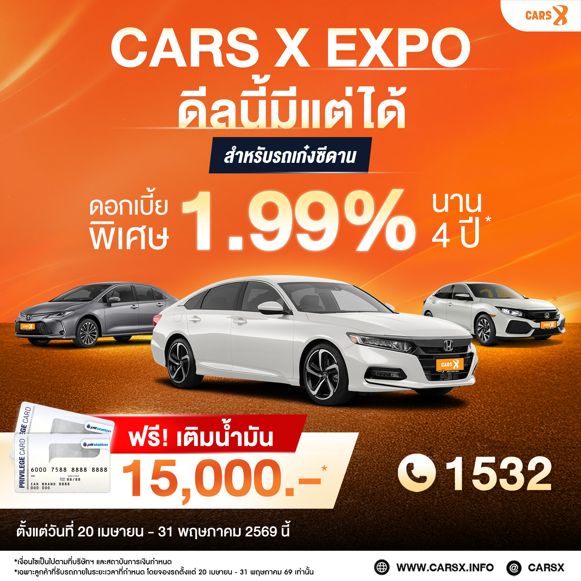 ออกรถ กับ CARS X วันนี้* รับดอกเบี้ยพิเศษ 0% นาน 3% ปี