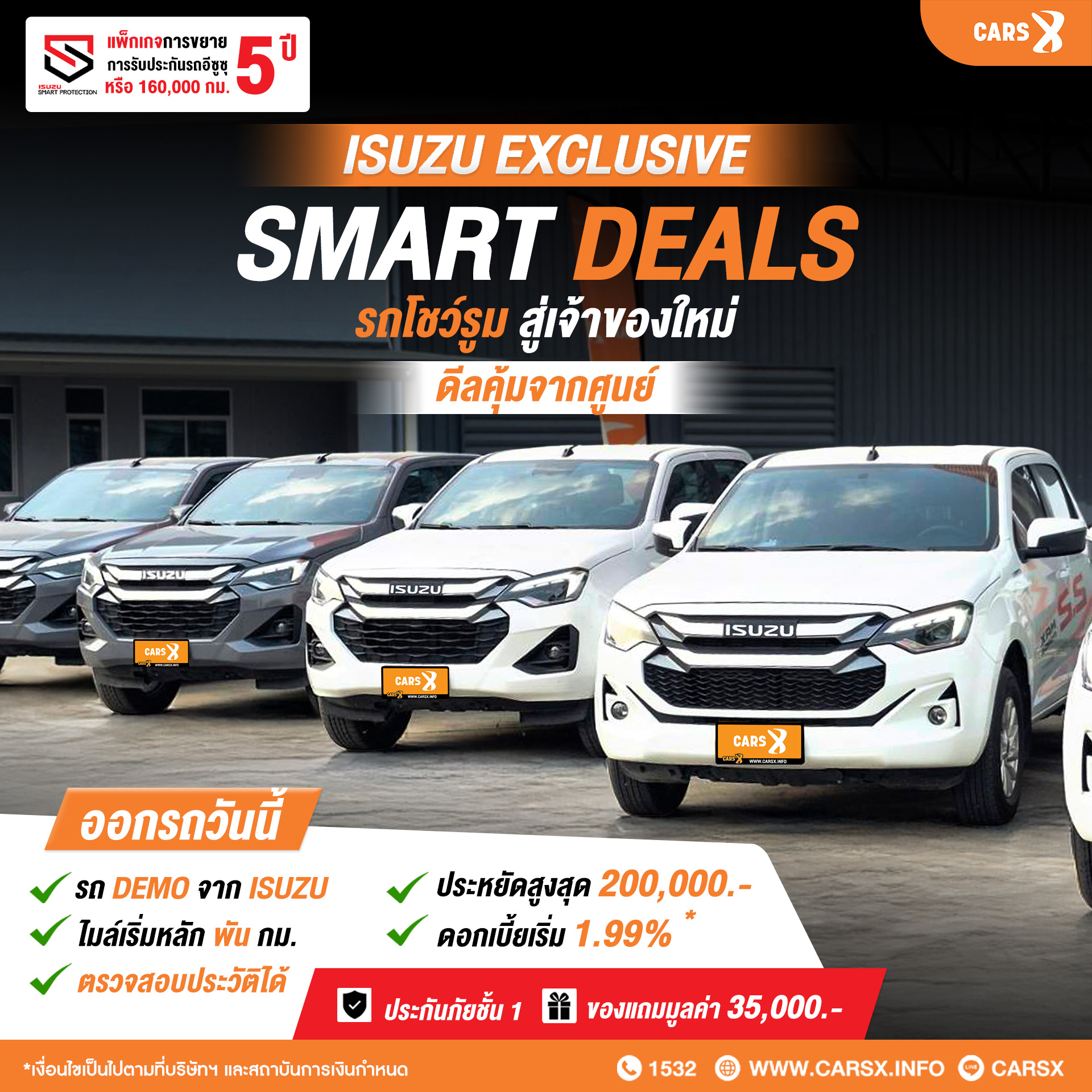 ISUZU EXCLUSIVE DEALS รถโชว์รูม สู่เจ้าของใหม่ ดีลคุ้มจากศูนย์ ออกรถวันนี้ ประหยัดสูงสุด 200,000 บาท ,ฟรี! แพ็กเกจขยายการรับประกันจากอีซูซุ 5 ปี หรือ 160,000 กม. , ดอกเบยี้เริ่มต้น 1.99% , ประกันภัยชั้น1 , ของแถมมูลค่า 35,000.-