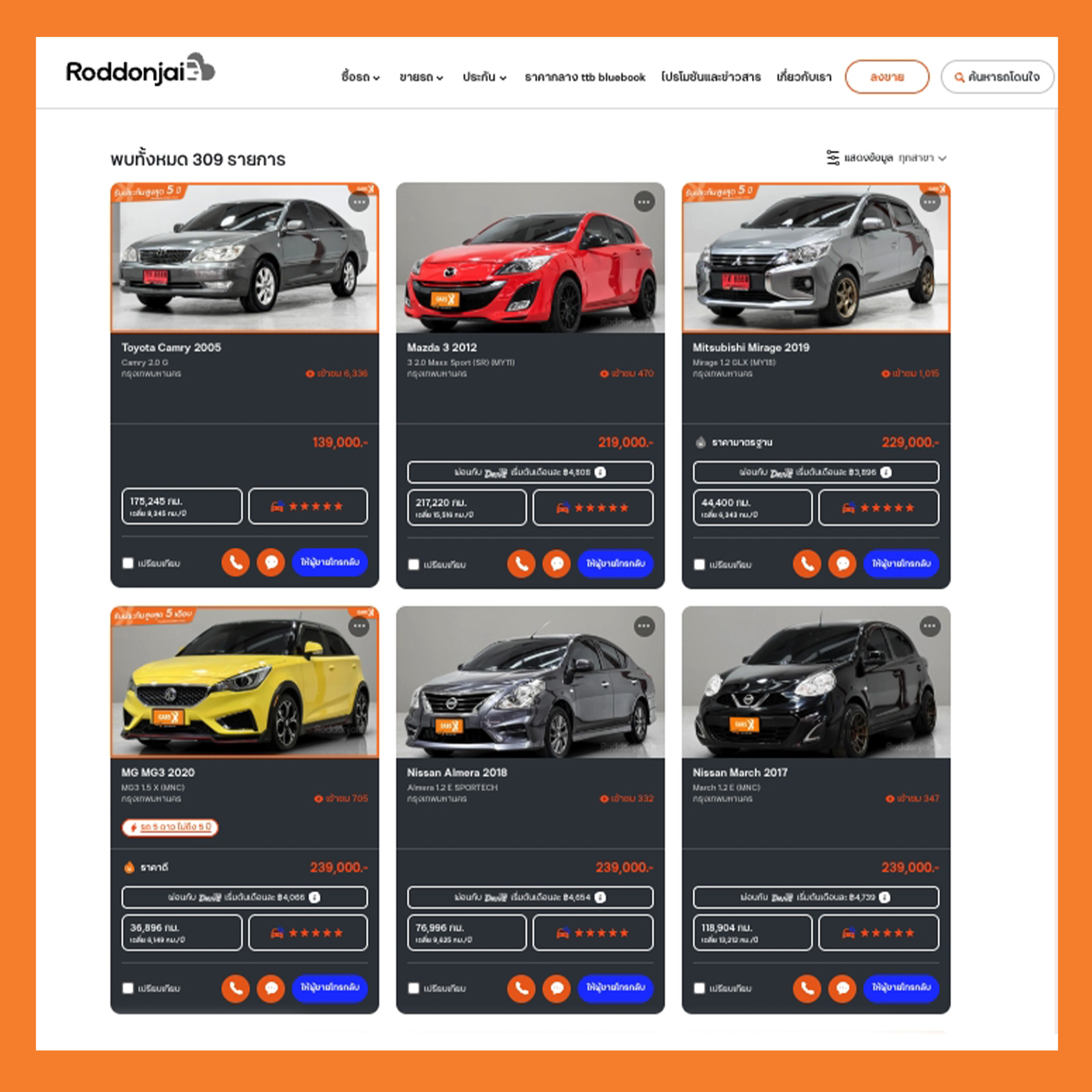 2. รถที่ร่วมรายการเฉพาะบนเว็บไซต์ Roddonjai