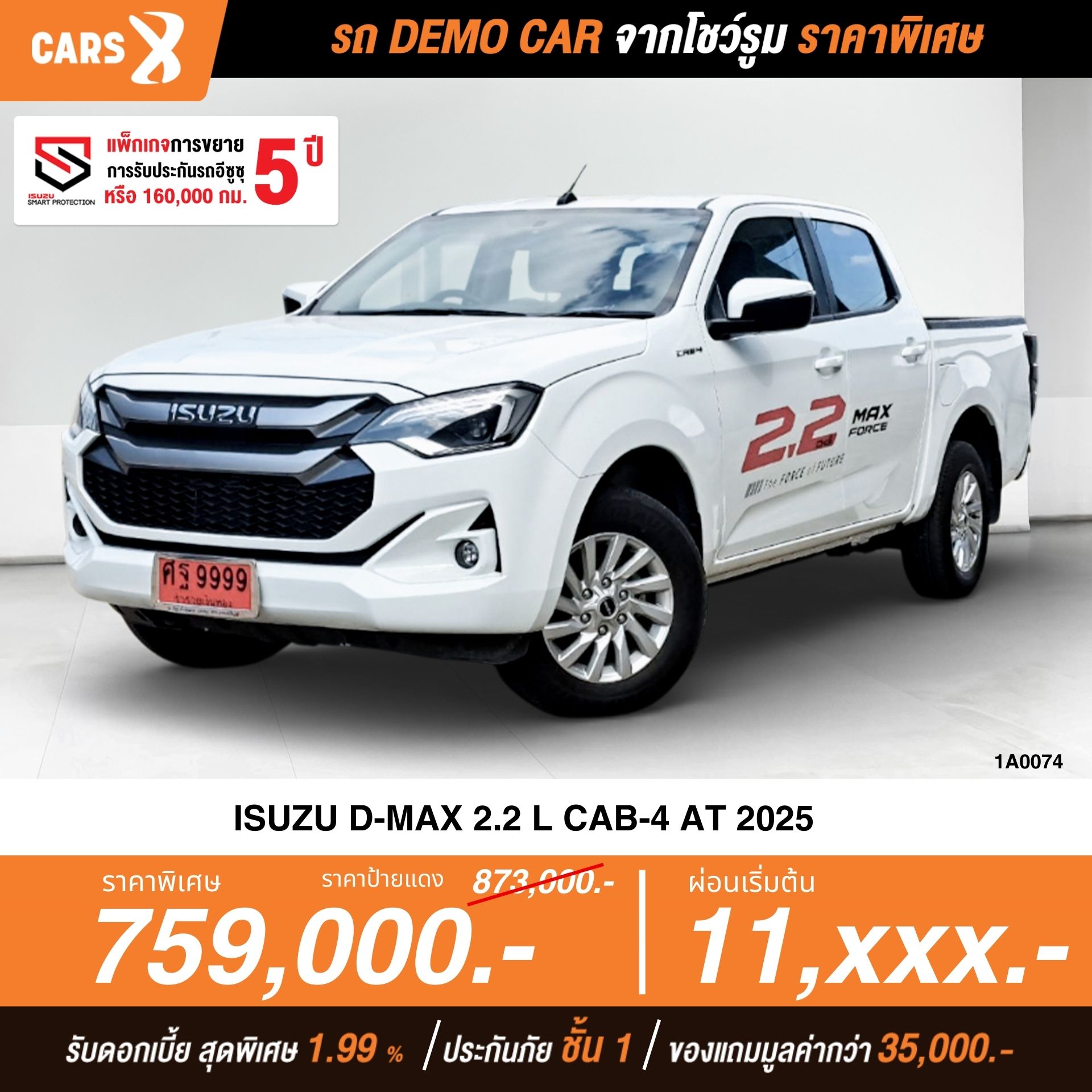 Isuzu D-Max Cab4 2.2 Ddi L คือรถกระบะ 4 ประตู (Cab4) เครื่องยนต์ดีเซล 2.2 ลิตร Ddi Blue Power ระดับอุปกรณ์ “L” ซึ่งจัดอยู่ในกลุ่มรุ่นกลาง–สูงของตระกูล D-Max