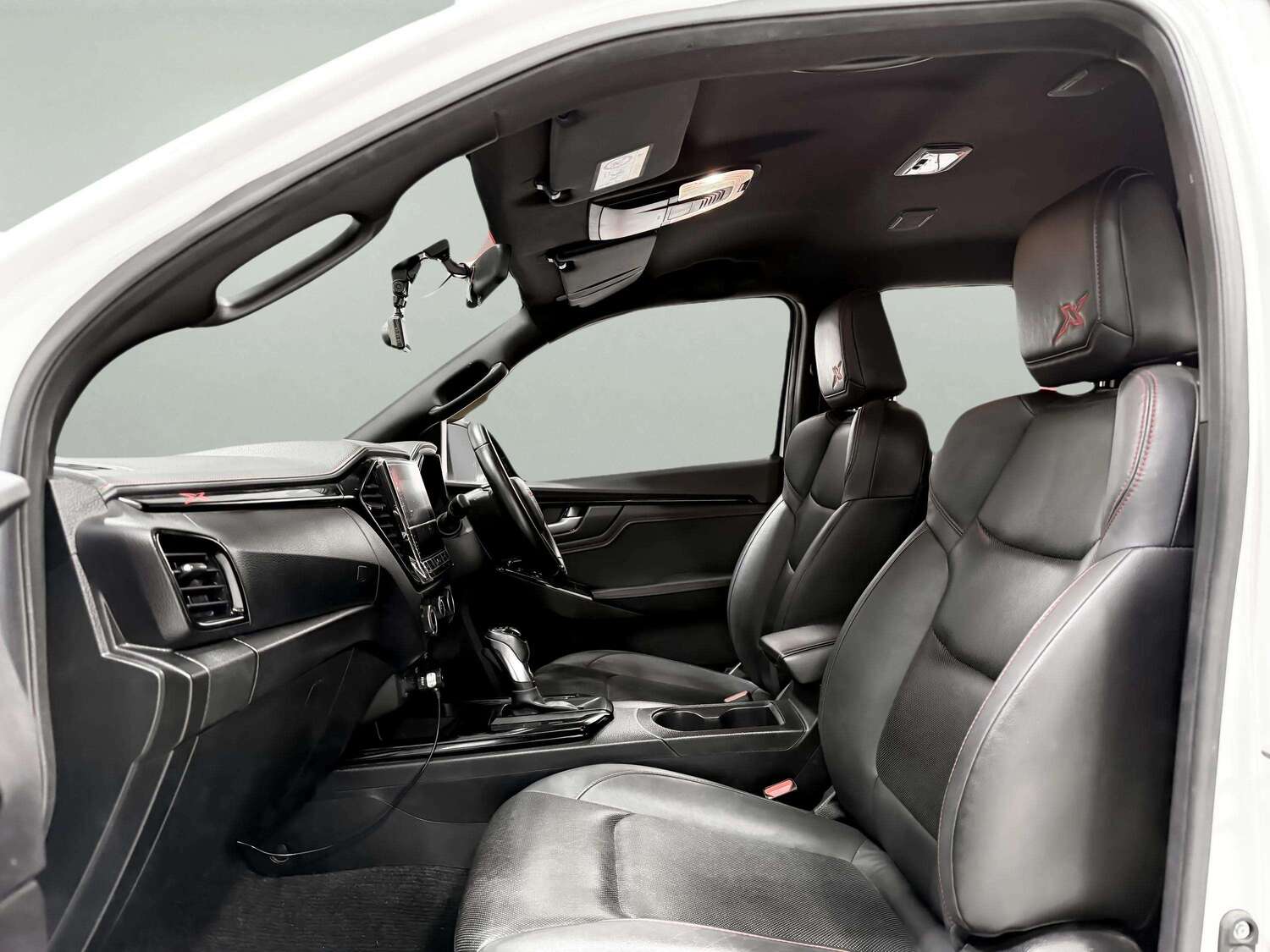 เบาะนั่งหุ้มด้วยหนังสีดำ เดินตะเข็บด้ายสีแดง พร้อมปักสัญลักษณ์ X